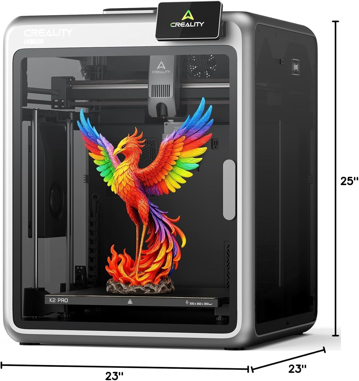 - Impresora 3D multicolor de próxima generación: la impresora 3D Creality K2 Pro admite hasta 16 colores e impresión de múltiples materiales con 4 unidades del Sistema de Filamento Creality (CFS). Como una verdadera impresora 3D multicolor, CFS ofrece identificación automática de filamentos, impresión de relés, almacenamiento a prueba de humedad y visualización de temperatura y humedad en tiempo real. Combinado con Creality OS y Creality Print, los usuarios obtienen cortes multicolores sin fisuras y gestión inteligente de filamentos para una experiencia de impresión de próxima generación. (K2 Pro sin CFS, las unidades CFS se venden por separado)