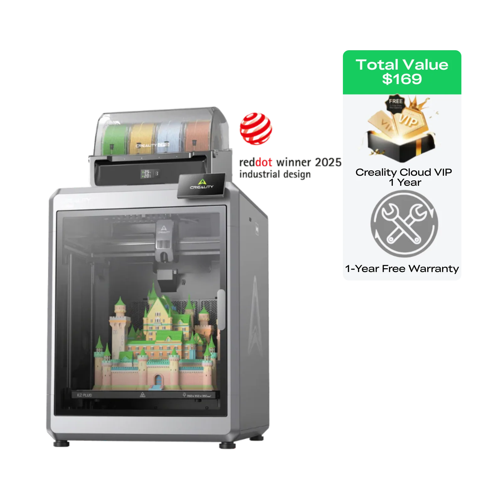 Tamaño más grande para satisfacer más necesidades: En comparación con Creality K2 y K2 Pro, la Creality K2 Plus ofrece un extraordinario volumen de construcción grande de 350*350*350mm, ideal para manejar objetos más grandes o lotes más grandes, los modelos grandes no requieren particiones, y los modelos pequeños se imprimen en lotes con más calma, satisfaciendo fácilmente tu aspiración de impresión 3D en constante expansión